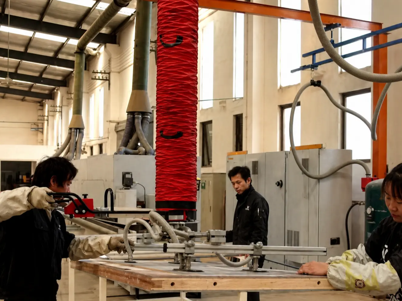 Traditional manual handling often requires 2-3 workers, consumes significant physical effort, and increases the risk of back strains. It can also cause costly edge damage to valuable materials. BILLIONS LIFTER® Vacuum Tube Lifter for Wood provides a safer, faster, and more ergonomic panel handling equipment solution for modern factories.