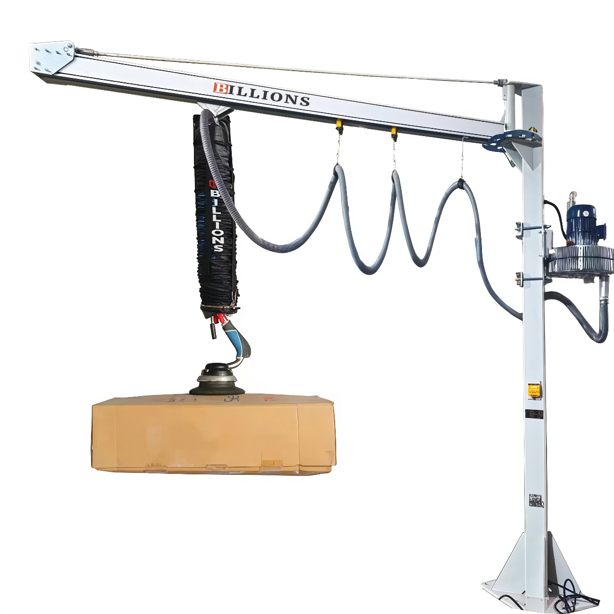 The BILLIONS high-frequency vacuum lifter is engineered for fast, precise handling in logistics, warehouses, and packaging lines. This lifting system effortlessly manages boxes, luggage, barrels, sheets, and food-grade items, boosting efficiency while reducing manual labor.